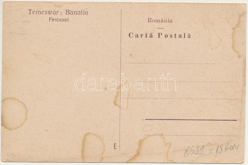 Temesvár, Timisoara; Festsaal / díszterem, belső / festival hall, inte... https://www.darabanth.com/de/463-Fernauktion/463.0/Ansichtskarten/Siebenburgen~1500007/Temesvar-Timisoara-Festsaal-diszterem-belso-festival-hall-interior-vagott-cut~II3116387