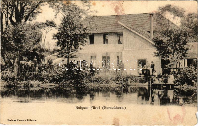 Beschreibung: Zólyom, Zvolen; Zólyomfüred (Füred), Boróka-erdő kastély. Nádosy Ferenc kiadása / Borováhora (Borová hora) / spa, forest, castle (b)