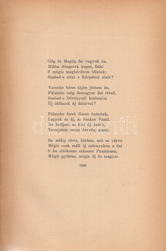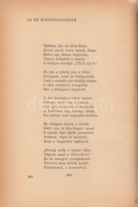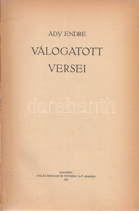 A költő halála után megjelent első Ady Endre-válogatást Dóczy Jenő rendezte sajtó alá. Valamennyi vers alatt az első kötetmegjelenés éve.