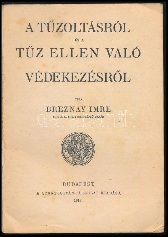 Breznay Imre: A tűzoltásról és a tűz ellen való védekezésről. Bp., 1913, Szent István-Társulat, 112 p. Kiadói illusztrált papírkötés, kissé foltos borítóval, néhány kissé foltos lappal. (Ritka!)