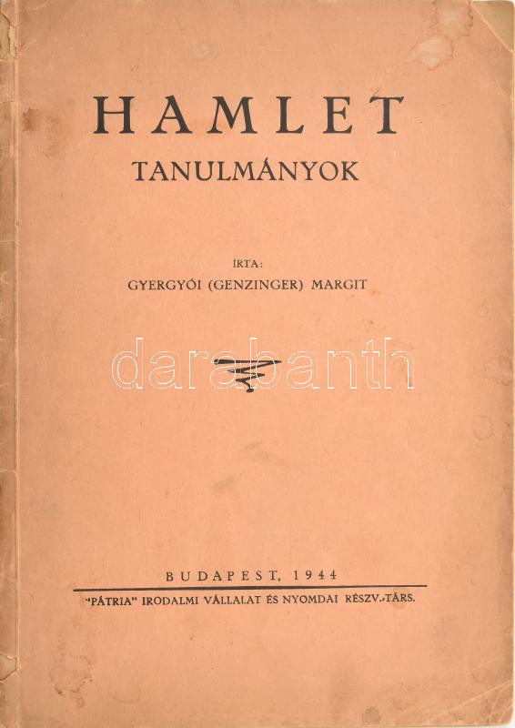 Gyergyói (Genzinger) Margit: Hamlet tanulmányok. Bp., 1944, szerzői ki... https://www.darabanth.com/de/463-Fernauktion/463.0/Bucher/Bucher-Andere-kuriositaten~2000017/Gyergyoi-Genzinger-Margit-Hamlet-tanulmanyok-Bp-1944-szerzoi-kiadas-Patria-ny-55plus1~II3117516