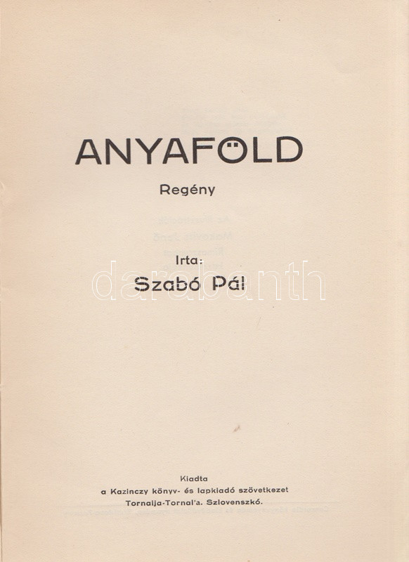 Tornalja-Tornal'a, 1934. Kazinczy Könyv- és Lapkiadó Szövetkezet (Concordia Könyvnyomda és Kiadóvállalat, Bratislava-Pozsony). 268 p. Első kiadás.