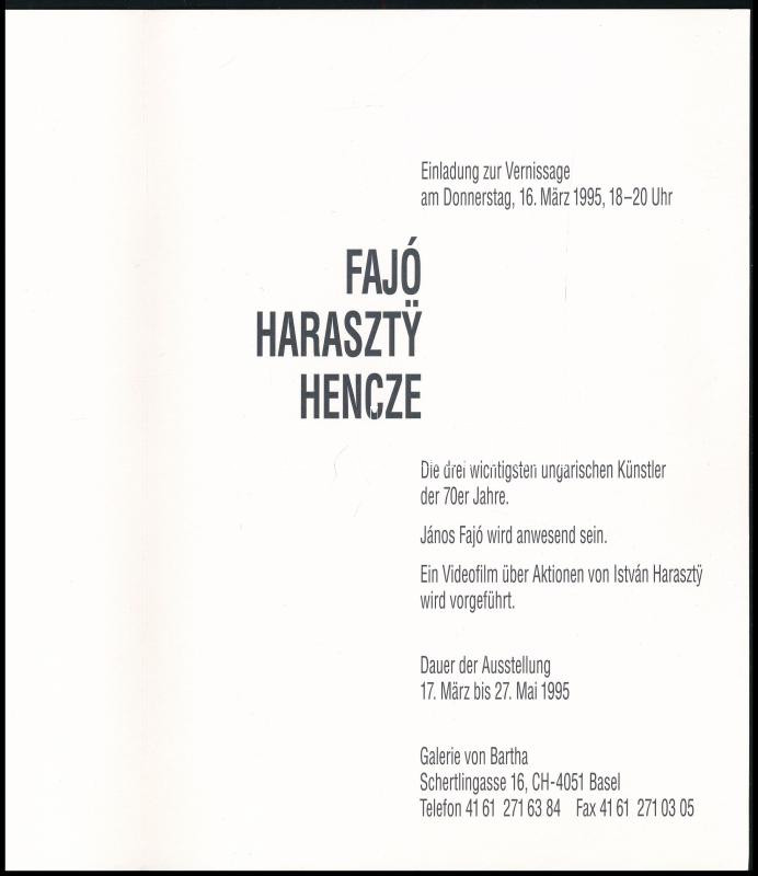 Beschreibung: Budapest 1970-1995 Fajó, Haraszthy, Hencze német kiállítás meghívója 4 p