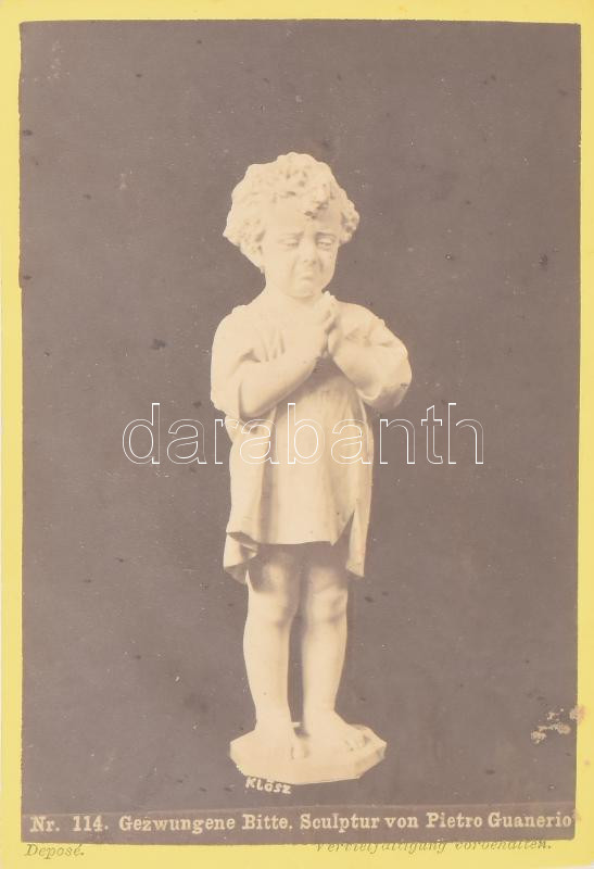 1873 Pietro Guanerio szobra, keményhátú fotó, Klösz György, vágott kar... https://www.darabanth.com/de/463-Fernauktion/463.0/Fotografie/Foto~2000049/1873-Pietro-Guanerio-szobra-kemenyhatu-foto-Klosz-Gyorgy-vagott-karton-9-5x7-cm~II3119599