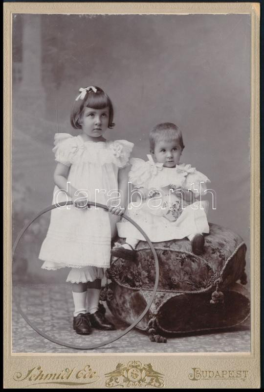 1896 Kislányok karikával, kerámia kancsóval, keményhátú kabinetfotó Sc... https://www.darabanth.com/de/463-Fernauktion/463.0/Fotografie/Foto~2000049/1896-Kislanyok-karikaval-keramia-kancsoval-kemenyhatu-kabinetfoto-Schmidt-Ede-1857-1933~II3121450