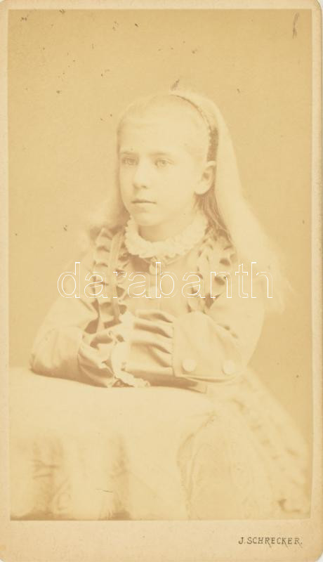 cca 1870 Kislány portréja, keményhátú fotó Schrecker pesti műterméből,... https://www.darabanth.com/de/463-Fernauktion/463.0/Fotografie/Foto~2000049/cca-1870-Kislany-portreja-kemenyhatu-foto-Schrecker-pesti-mutermebol-10-5x6-5-cm~II3123071