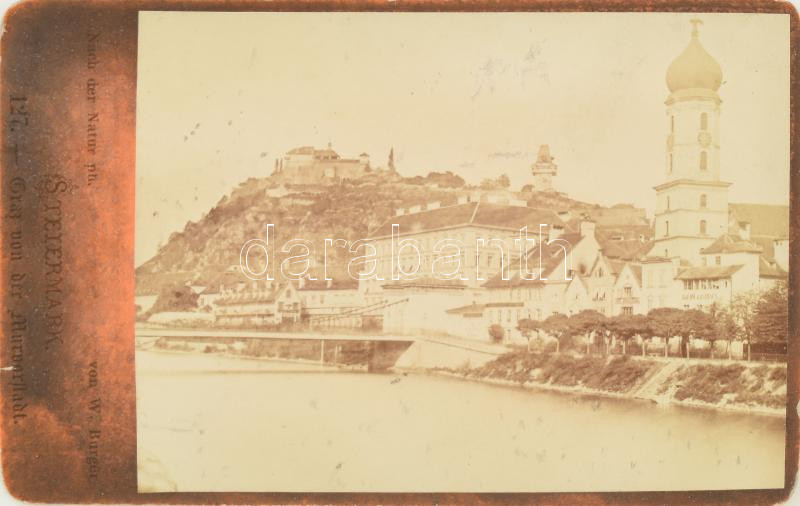 Beschreibung: cca 1880-1890 Graz von der Murvorstadt, Steiermark (Graz látképe, Stájerország), keményhátú foto, W. Burger felvétele, 7x10,5 cm
