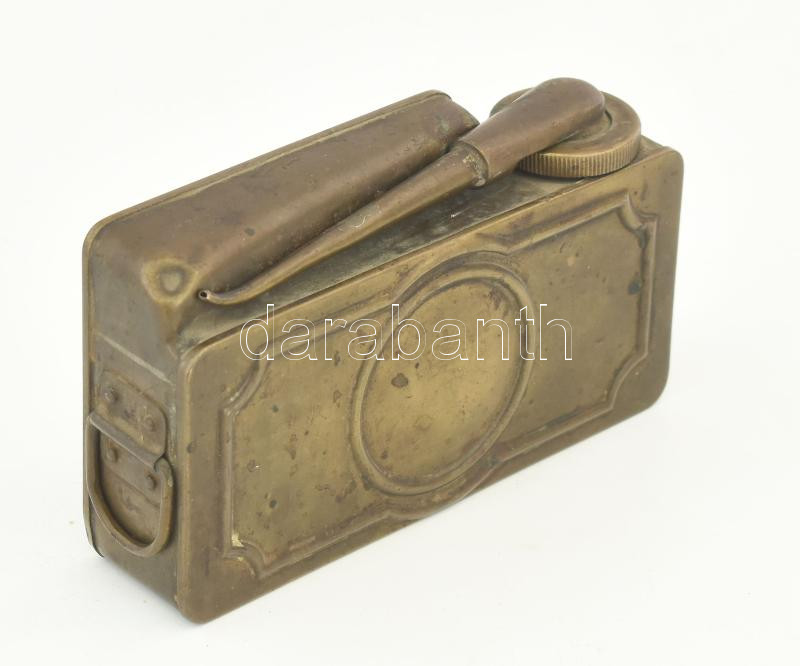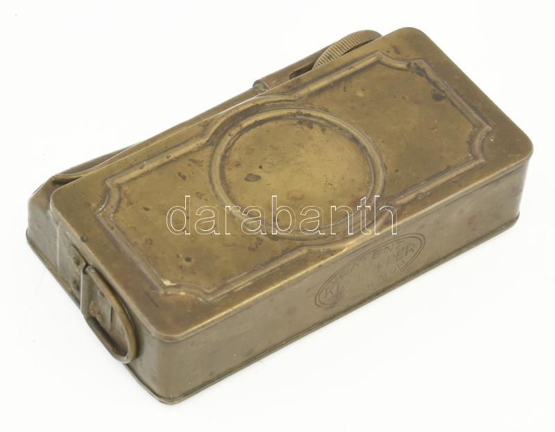 cca 1930-1940 Olajozó kanna. Réz, jelzett, gyártó: Krolupper József vasúti jelzőlámpa-, fém- és bádogárugyár Rt., Budapest. Korának megfelelő állapotban, 13x7,5x3 cm