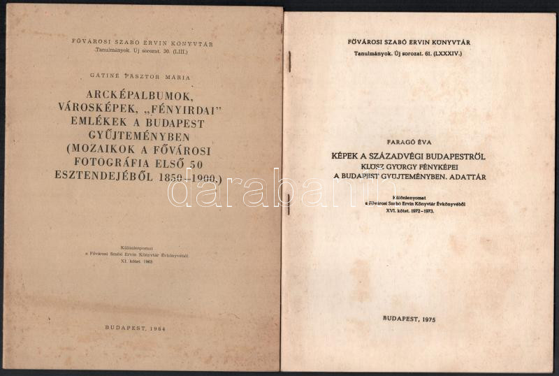 Acképalbumok, városképek., "fényírdai" emlékek a Budapest gyűjteményben. Bp., 1964. + Faragó Éva. Képek a századvégi Budapestről, Klösz György fényképei a Budapest gyűjteményben. Bp., 1975