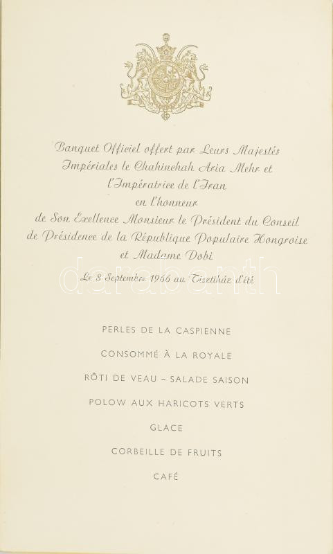 1966 Irán császárnéja által Dobi István államfő részére tartott díszva... https://www.darabanth.com/de/463-Fernauktion/463.0/Kunst-Dokumente-andere-Sammelgebiete/Drucksachen~2000038/1966-Iran-csaszarneja-altal-Dobi-Istvan-allamfo-reszere-tartott-diszvacsora-a-budapesti~II3115523