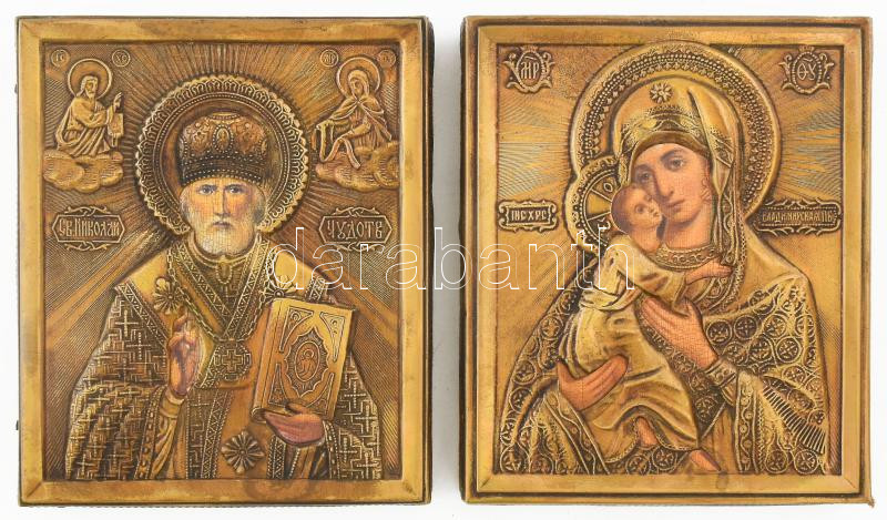 Beschreibung: 2 darab modern ikon. Nyomat alapon rézlemez oklád, 14x11,5 cm