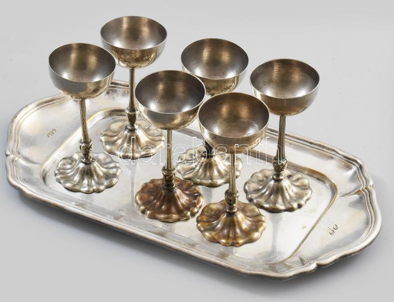 Ezüstözött alpakka pohár szett tálcán. 1929, kopással, 26x14 cm, pohár... https://www.darabanth.com/de/463-Fernauktion/463.0/Kunst-Dokumente-andere-Sammelgebiete/Flohmarkt~1000017/Ezustozott-alpakka-pohar-szett-talcan-1929-kopassal-26x14-cm-pohar-m-9-cm~II3118135