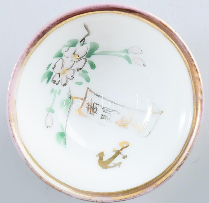 Japán porcelán katonai szakés csésze. cca 1940-1944, Haditengerészet, Terada tulajdonosi megjelöléssel, cseresznyevirág és horgony ábrázolással, kis pattogzással, d: 5,5 cm