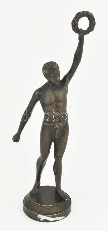 Beschreibung: cca 1935, Atléta. Bronz, talapzaton. Az 1936-os nyári olimpiára készült bronz szobor, kis deformálódással, m: 25,5 cm