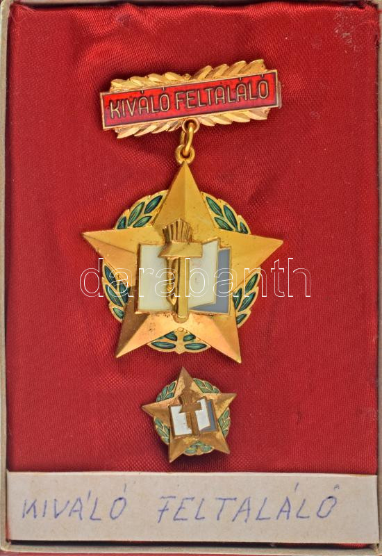 ~1980. "Kiváló Feltaláló Arany fokozata" műgyantás kitüntetés miniatűr... https://www.darabanth.com/de/463-Fernauktion/463.0/Numismatik/Faleristik-Auszeichnungen-Medaillen-Orden~500020/7E1980-Kivalo-Feltalalo-Arany-fokozata-mugyantas-kituntetes-miniaturrel-eredeti-kisse~II3112765