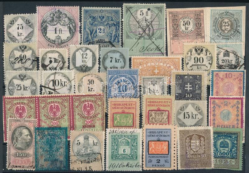Beschreibung: 34 db régi magyar, osztrák és egyéb külföldi okmánybélyeg