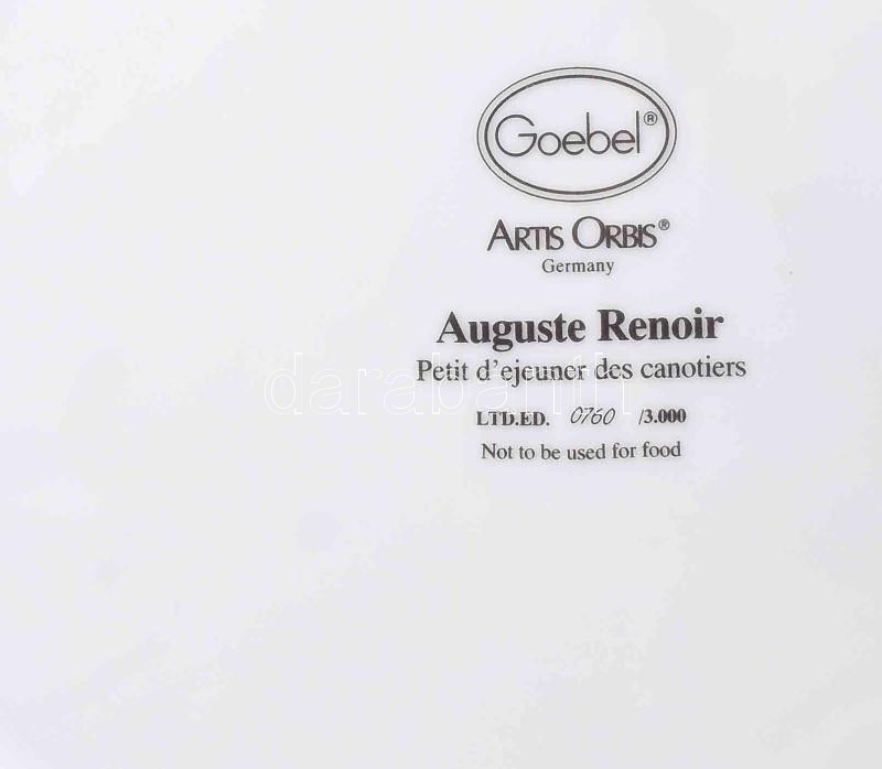 Goebel Artis Orbis dísztál, Auguste Renoir: Petit d'ejeuner des canotiers (Evezősök reggelije) festményének reprodukciójával díszítve. Jelzett, sorszámozott: 760/3000, hibátlan, d: 31,5 cm