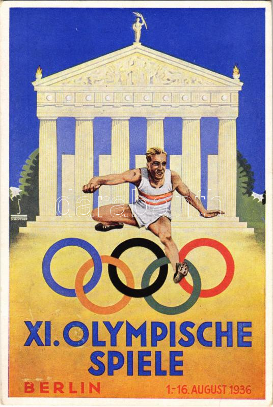 1936 Berlin XI. Olympische Spiele / 1936. évi nyári olimpiai játékok / 1936 Summer Olympics s: Schroffner + "Berlin Olympische Dorf XI. Olympiade 1936" So. Stpl.