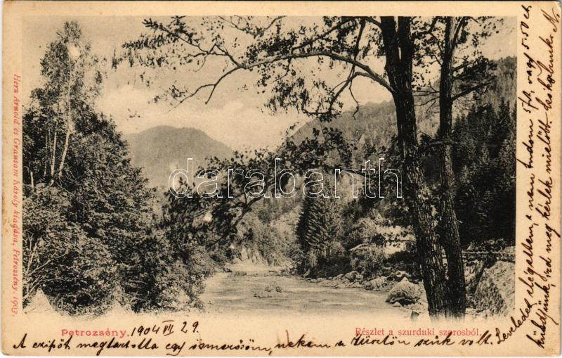 1904 Petrozsény, Petrosani; részlet a Szurduki szorosból. Herz Arnold ... https://www.darabanth.com/de/464-Fernauktion/464.0/Ansichtskarten/Siebenburgen~2000006/1904-Petrozseny-Petrosani-reszlet-a-Szurduki-szorosbol-Herz-Arnold-es-Grausam-Karoly-kiadas~II2925959