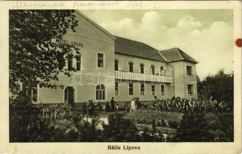 1928 Lippafüred, Lippafürdő, Baile Lipova (Temes, Timis); Nagyszálloda... https://www.darabanth.com/de/464-Fernauktion/464.0/Ansichtskarten/Siebenburgen~2000006/1928-Lippafured-Lippafurdo-Baile-Lipova-Temes-Timis-Nagyszalloda-Hotel-Grand-EK~II3021067