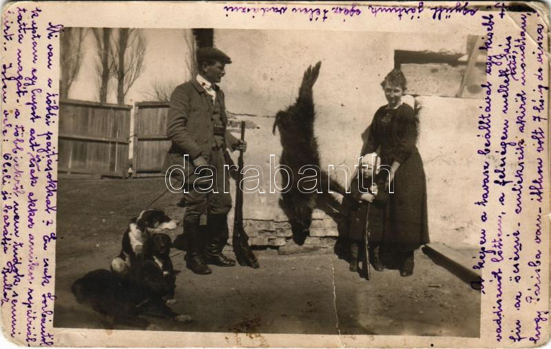 Beschreibung: 1940 Sárkány, Sercaia, Schirkanyen (Fogaras megye); Bulla József épületvállalkozó vadászat után egy lelőtt vaddisznóval / hunter with hunted wild boar. photo (fa)