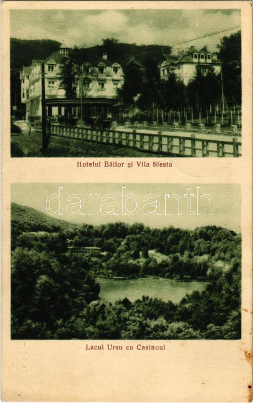 1940 Szováta-fürdő, Baile Sovata; Hotelul Bailor si Villa Siesta, Lacul Ursu cu Casinoul / Siesta nyaraló és fürdő szálloda, Medve tó és kaszinó / villa and spa hotel, lake, casino