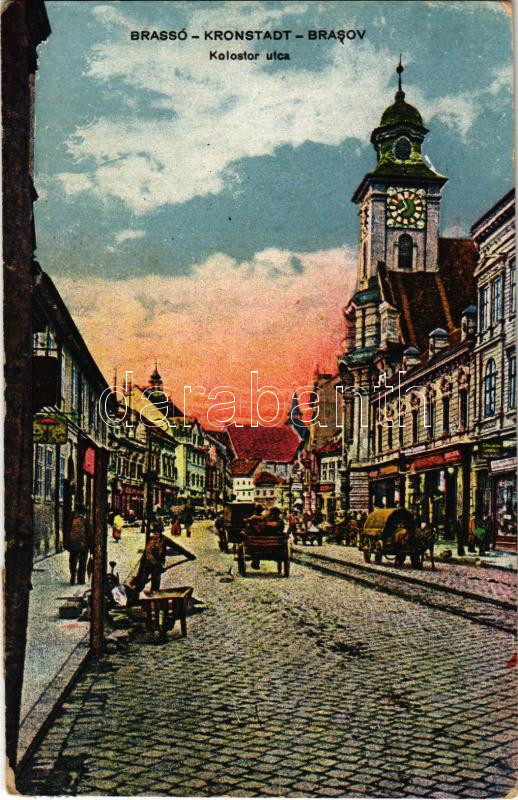 Brassó, Kronstadt, Brasov; Kolostor utca. Vasúti levelezőlapárusítás /... https://www.darabanth.com/de/464-Fernauktion/464.0/Ansichtskarten/Siebenburgen~2000006/Brasso-Kronstadt-Brasov-Kolostor-utca-Vasuti-levelezolaparusitas-street-EK~II3126569