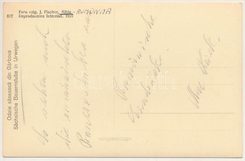 Szászorbó, Urwegen, Garbova Saseasca; Odaie saseasca / Sächsische Baue... https://www.darabanth.com/de/464-Fernauktion/464.0/Ansichtskarten/Siebenburgen~2000006/Szaszorbo-Urwegen-Garbova-Saseasca-Odaie-saseasca-Sachsische-Bauernstube-Szasz-paraszthaz~II3125045