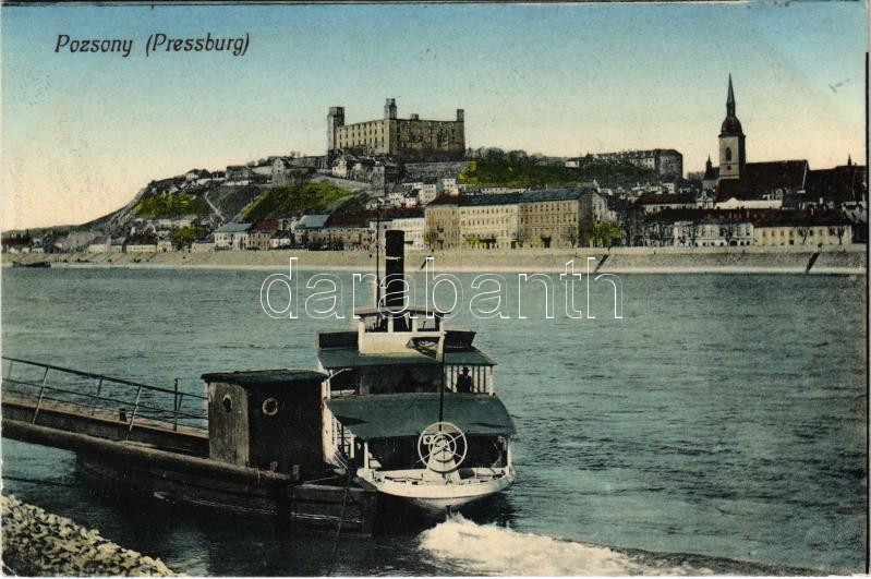 1914 Pozsony, Pressburg, Bratislava; vár, gőzhajó / castle, steamship ... https://www.darabanth.com/de/464-Fernauktion/464.0/Ansichtskarten/Slowakei~2000007/1914-Pozsony-Pressburg-Bratislava-var-gozhajo-castle-steamship-EK~II2936352