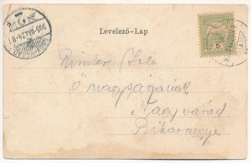 Beschreibung: 1905 Gödöllő, kastély udvara. Nemesánszky Józsefné kiadása, Art Nouveau, floral, litho (szakadás / tear)