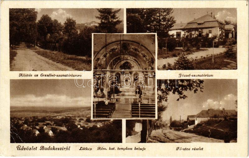 Beschreibung: Budakeszi, kilátás az Erzsébet szanatóriumra, József szanatórium, Római katolikus templom belseje, Fő utca (EB)