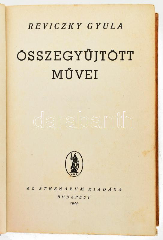 Reviczky Gyula összegyűjtött művei. Bp., 1944., Athenaeum. Kiadói félv... https://www.darabanth.com/de/464-Fernauktion/464.0/Bucher/Bucher-Andere-kuriositaten~1500033/Reviczky-Gyula-osszegyujtott-muvei-Bp-1944-Athenaeum-Kiadoi-felvaszon-kotes-kopott-foltos~II3108338