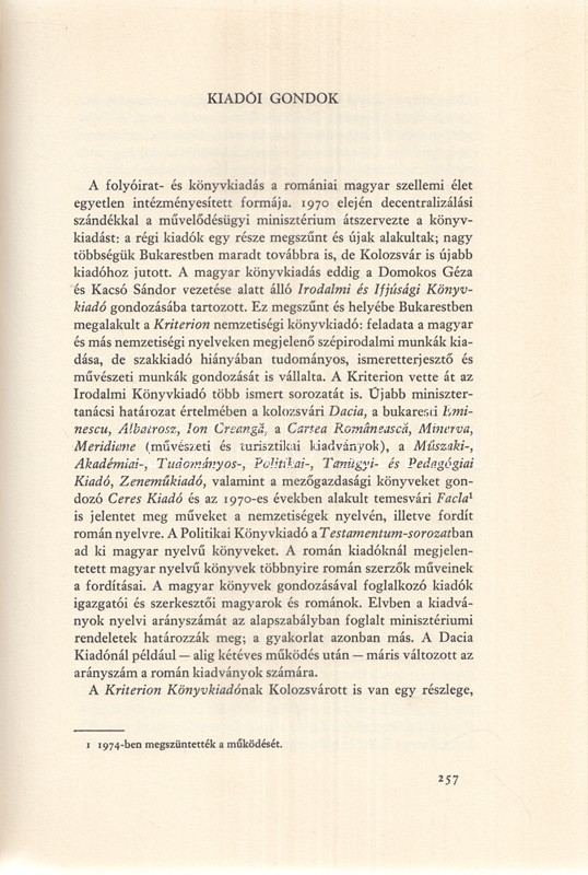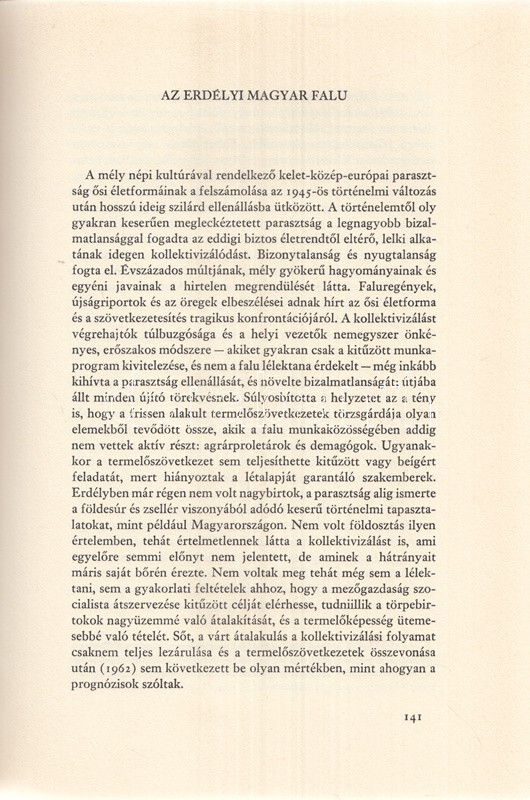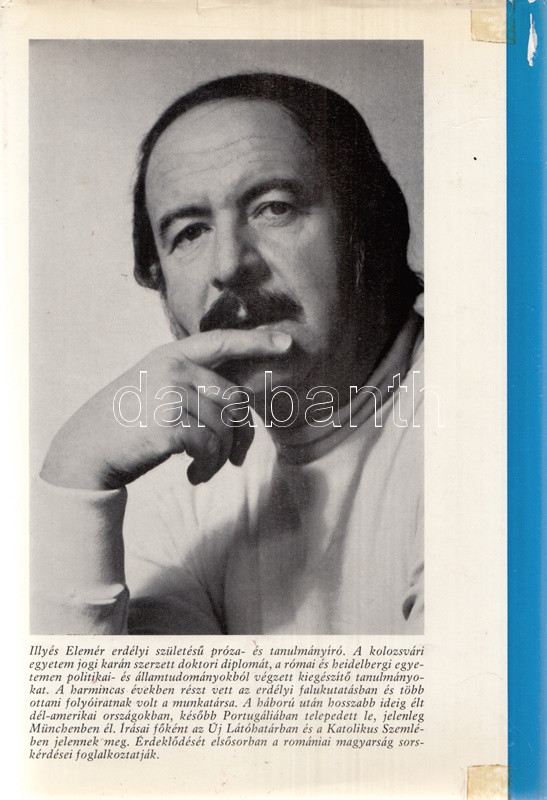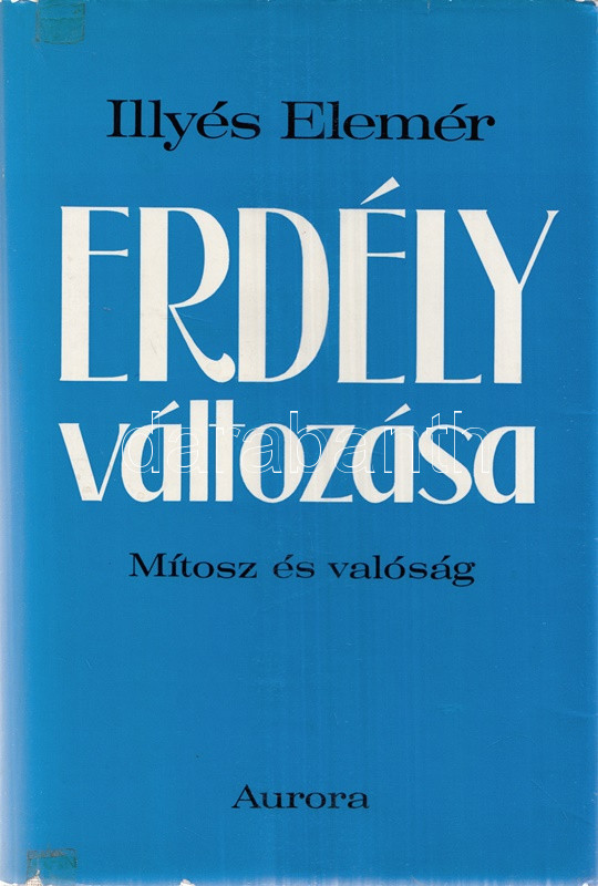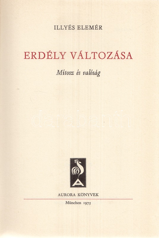 Illyés Elemér: Erdély változása. Mítosz és valóság. München, 1975. Aurora Könyvek (Molnár József ny.) 359 + [1] p. Első kiadás. Az erdélyi születésű és neveltetésű Illyés Elemér (1919-1989) jogász, falukutató, történész a második világháború után a nyugati magyar emigráció tagja. Egykori szülőföldje iránti érdeklődése az 1970-es évek eleji hazalátogatása nyomán élénkül meg. A munka első része szubjektív útinapló, az ezt követő tanulmányok az erdélyi magyarság gazdasági, kulturális, szociológiai körülményeinek sokrétű leírásai. A munka később újabb magyar kiadásban, majd német és angol kiadásban is megjelent, Magyarországon a kötet ugyanakkor nem látott napvilágot. Kiadói egészvászon kötésben és színes kiadói védőborítóban. Jó példány.