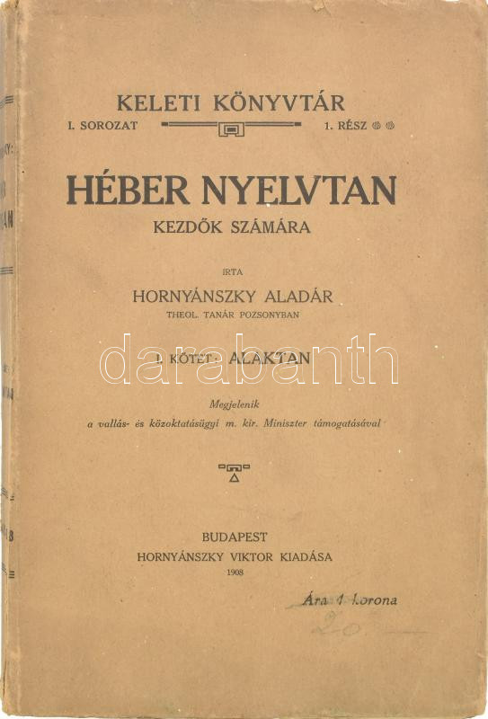 Hornyánszky Aladár: Héber nyelvtan kezdők számára. I. kötet: Alaktan. ... https://www.darabanth.com/de/464-Fernauktion/464.0/Bucher/Bucher-Judaica~1500028/Hornyanszky-Aladar-Heber-nyelvtan-kezdok-szamara-I-kotet-Alaktan-Keleti-Konyvtar-I-sorozat~II3125615