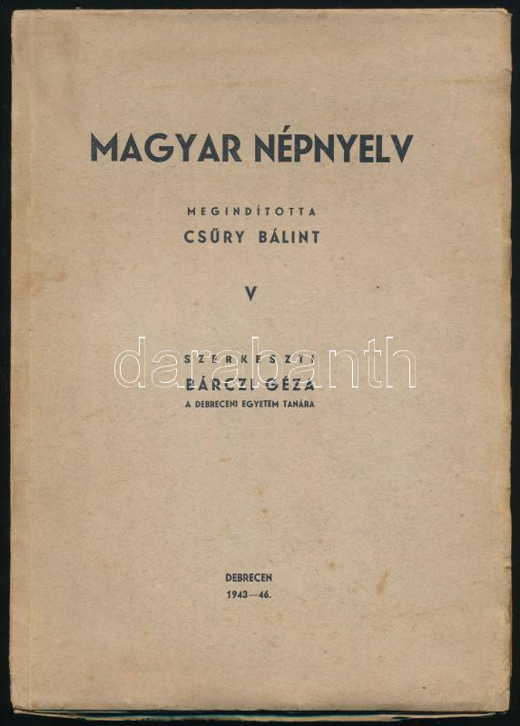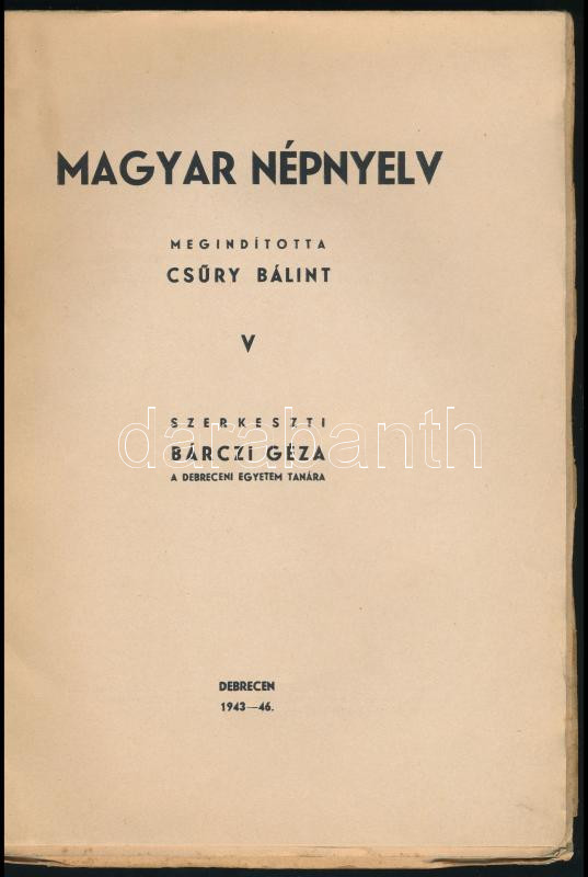 Magyar népnyelv. V. Szerk.: Bárczi Géza. Debrecen, 1943-46., Magyar Né... https://www.darabanth.com/de/464-Fernauktion/464.0/Bucher/Bucher-Sozialwissenschaften~1500025/Magyar-nepnyelv-V-Szerk-Barczi-Geza-Debrecen-1943-46-Magyar-Nepnyelvkutato-Intezet-Kiadoi~II3129603