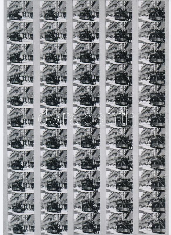 cca 1910 Mozgófilm felvétel egy lóvasútról, 55 állókép közös fotópapíron, 1 db modern nagyítás, jelzés nélkül, Pánczél György (1920-?) filmtörténész hagyatékából (film- és színházifotó gyűjteményéből), 21x15 cm