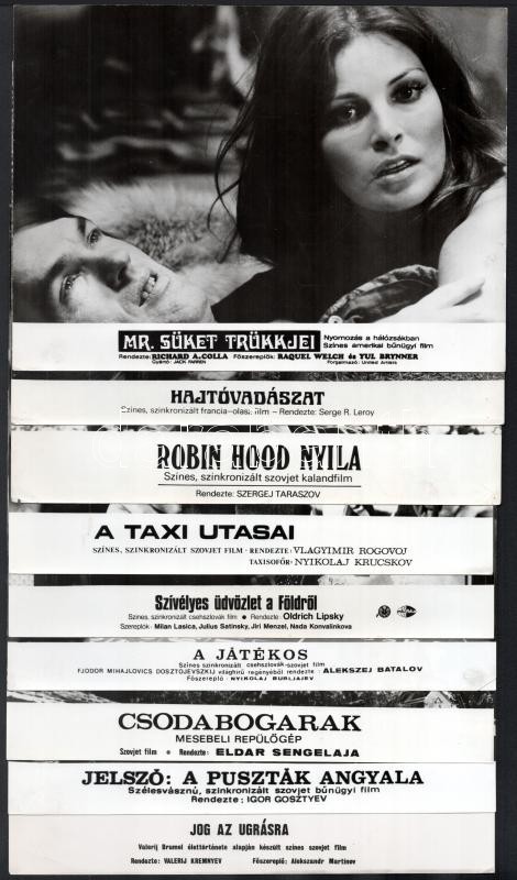 cca 1988 előtt, külföldön készült, de Magyarországon is bemutatott filmek egy-egy jelenete, 16 db vintage produkciós filmfotó, ezüst zselatinos fotópapíron, a használatból eredő (esetleges) kisebb hibákkal, 18x24 cm vagy ehhez közeli méretben (+ - 6 mm)