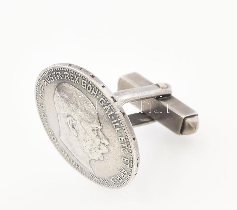 Ezüst mandzsetta Ferenc Józsefet ábrázoló 1 koronás ezüst pénzekből. 1... https://www.darabanth.com/de/464-Fernauktion/464.0/Juwellen-und-Kunstobjekte-aus-Edelmetall/Juwellen-und-Kunstobjekte-aus-Edelmetall~1500034/Ezust-mandzsetta-Ferenc-Jozsefet-abrazolo-1-koronas-ezust-penzekbol-15-g~II3124216