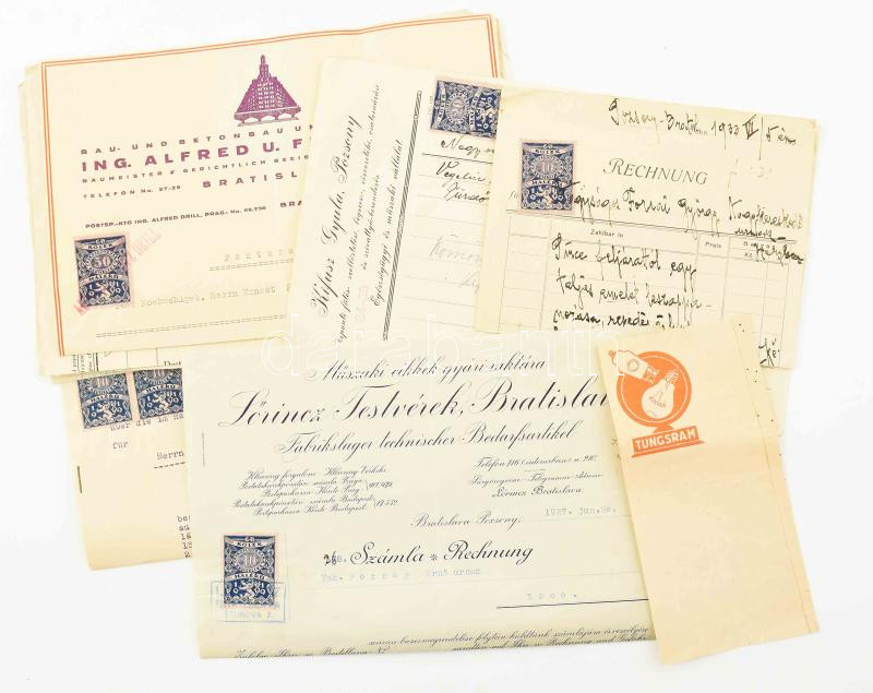 1932-1938 Pozsony (Bratislava), 8 db klf. fejléces számla + egy Tungsr... https://www.darabanth.com/de/464-Fernauktion/464.0/Kunst-Dokumente-andere-Sammelgebiete/Dokument~1000020/1932-1938-Pozsony-Bratislava-8-db-klf-fejleces-szamla-plus-egy-Tungsram-szamolocedula~II3129922