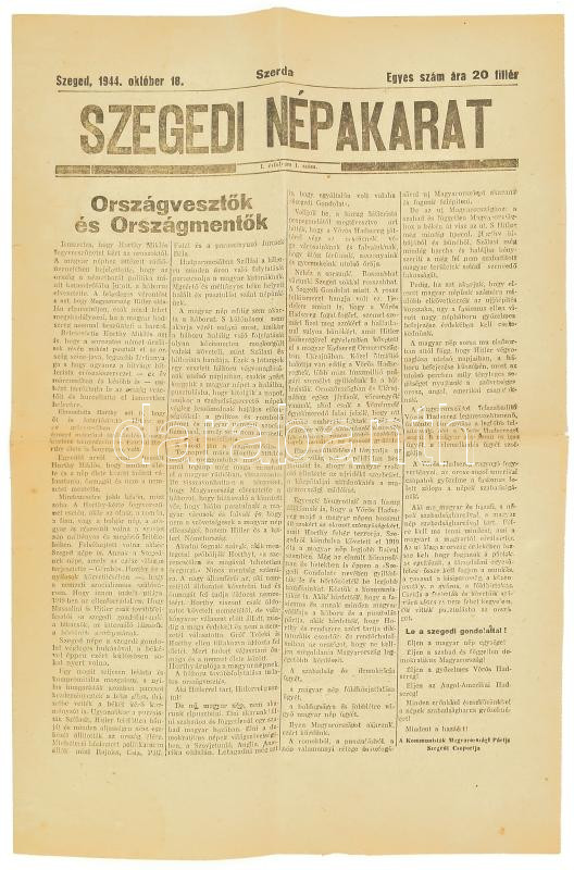 1944 Szegedi Népakarat. I. évf. 1. szám. https://www.darabanth.com/de/464-Fernauktion/464.0/Kunst-Dokumente-andere-Sammelgebiete/Drucksachen~1500012/1944-Szegedi-Nepakarat-I-evf-1-szam~II3112308