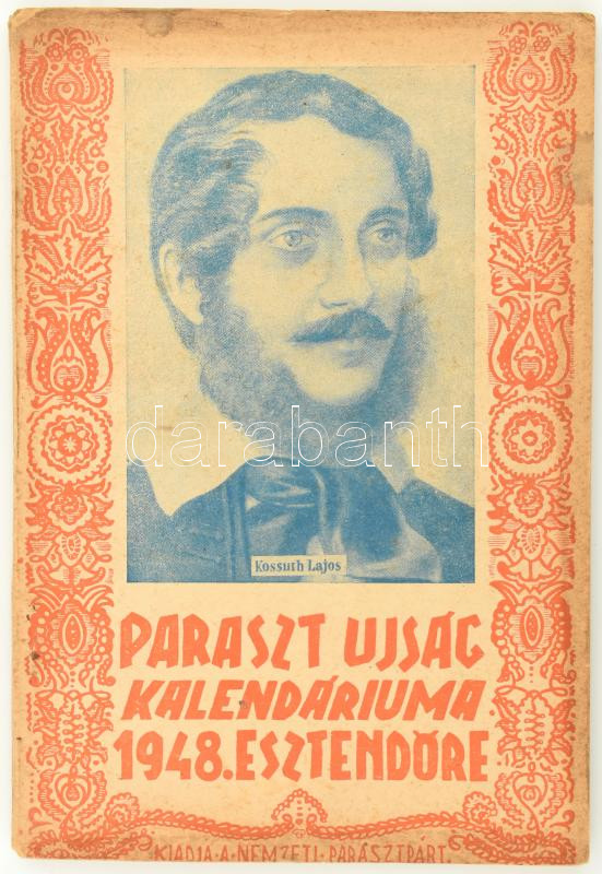 1948 Paraszt Ujság Kalendáriuma az 1948 szökő esztendőre. Szerk.: Erdei Sándor. Bp.,1948, Nemzeti Parasztpárt, (Hungária-ny.), 95+1 p. Kiadói illusztrált papírkötés, a borítón Kossuth Lajossal, kissé foltos borítóval.