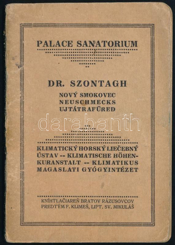 cca 1930 Dr. Szontagh Palace Sanatorium Újtátrafüreden gyógyrendelet f... https://www.darabanth.com/de/464-Fernauktion/464.0/Kunst-Dokumente-andere-Sammelgebiete/Drucksachen~1500012/cca-1930-Dr-Szontagh-Palace-Sanatorium-Ujtatrafureden-gyogyrendelet-fuzetet-a-hazirenddel-~II3129418