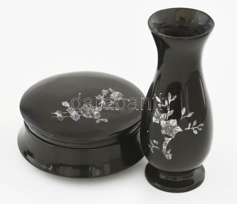 Lakkozott fa váza és bonbonier, gyöngyház berakással, kis kopással, m:... https://www.darabanth.com/de/464-Fernauktion/464.0/Kunst-Dokumente-andere-Sammelgebiete/Flohmarkt~1000014/Lakkozott-fa-vaza-es-bonbonier-gyongyhaz-berakassal-kis-kopassal-m-18-cm-d-15-cm~II3123698