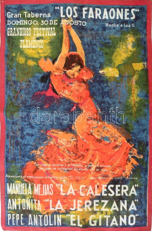 "Los Farones", gradioso festival flamenco, dekoratív fali kárpit. 72x4... https://www.darabanth.com/de/464-Fernauktion/464.0/Kunst-Dokumente-andere-Sammelgebiete/Flohmarkt~1000014/Los-Farones-gradioso-festival-flamenco-dekorativ-fali-karpit-72x48-cm~II3129907