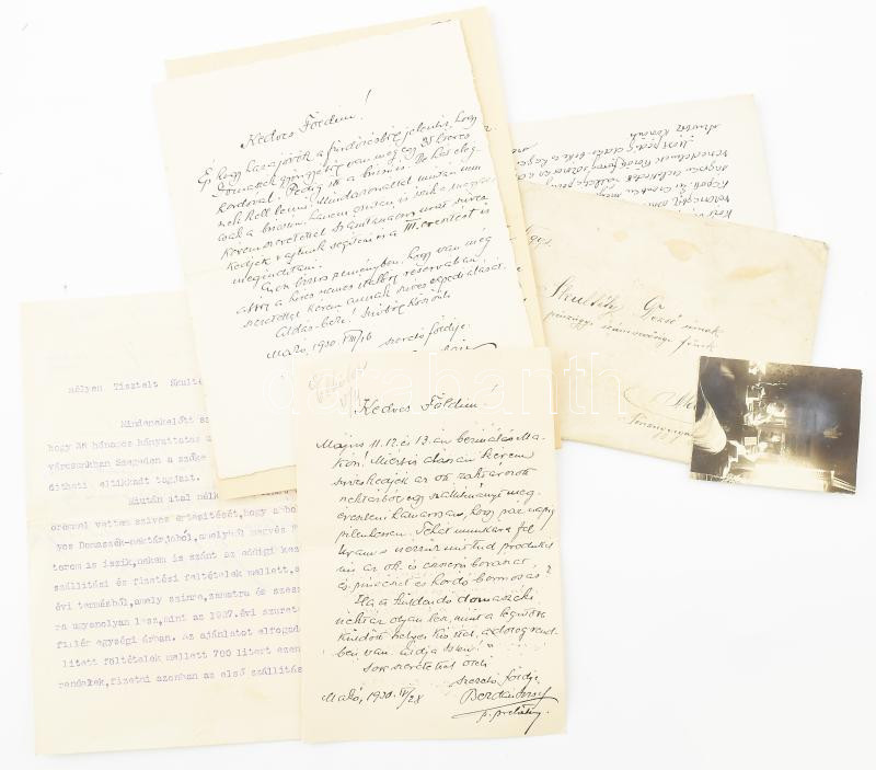 1928-1932 Berdai József makói plébános levelezése Skultéty Dezső makói pénzügyigazgatósági vezetővel: gépelt és kézzel írt levelek, feladószelvények, boríték, fotó; össz. 12 db