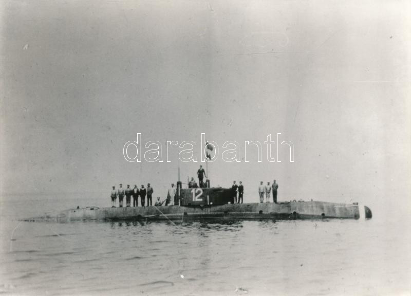 Az osztrák-magyar haditengerészet S.M. U-XII. tengeralattjárója, modern nagyítás, 18x12 cm / S.M. U-XII submarine is flying the k.u.k. Kriegsmarine flag. modern copy