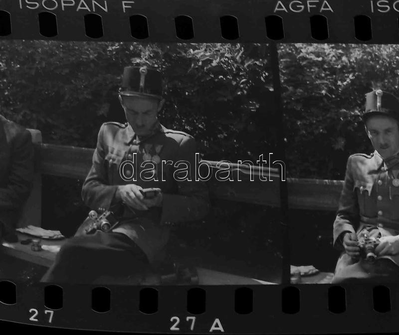 Beschreibung: M. kir. katonatiszt kitüntetésekkel, fényképezőgéppel, 2 db negatív