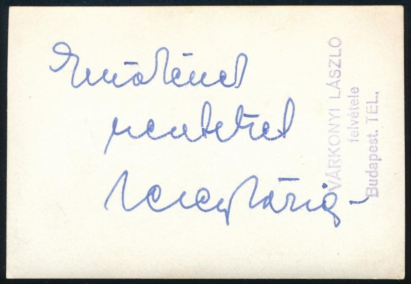 Beschreibung: Mezey Mária (1909-1983) színésznő aláírása kép hátoldalán