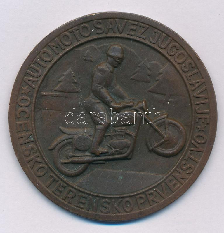 Jugoszlávia DN "Jugoszláviai Autómotor Szövetség - Off-road bajnokság" egyoldalas bronz emlékérem (48mm) T:XF patina Yugoslavia ND "Automotor Association of Yugoslavia, Off-road Championship" one-sided bronze commemorative medallion (48mm) C:XF patina