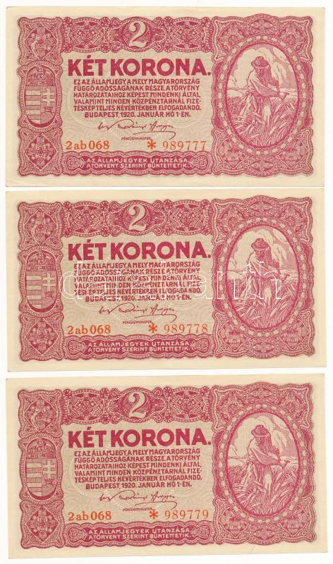 ... https://www.darabanth.com/de/464-Fernauktion/464.0/Numismatik/Ungarische-Banknoten~500008/1920-2K-3x-sorszamkovetok-2ab068-989777-2ab068-989779-T-XFAdamo-K71~II3124291